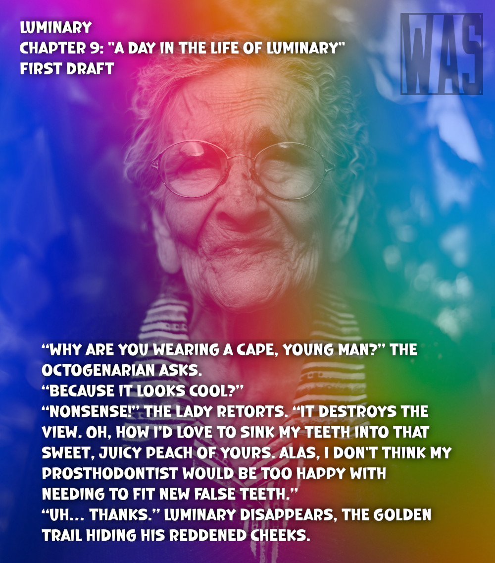 As always, please note that these snippets are not representative of any final product; they are a work in progress. Luminary‘s snippets come from draft one (though I consider my initial NaNoWriMo version draft zero); Till Death Do Us Party‘s are from draft three. These may or may not make it to the final product, and if they do, who knows how their final form will look? So just consider these as glimpses into the drafting process.