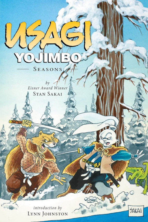 Usagi Yojimbo Book 11: Seasons collects #7-12 of the Dark Horse series. The introduction is by cartoonist Lynn Johnston, known for For Better or Worse, which I’m not familiar with. She’s also both the first Canadian and the first woman to win the National Cartoonist Society’s Reuben Award. In her introduction, she discusses how Usagi is a facet of Sakai’s personality. Somewhat disappointingly, this collection doesn’t include any notes from Sakai. I’m not sure if it’s because he didn’t feel any stories warranted them, or if Dark Horse opted to stop including them. I imagine the next entry in this series will give me the answer.