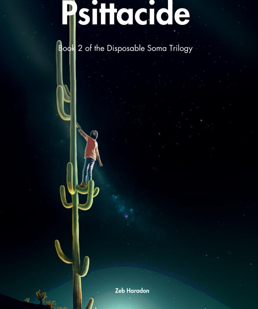 In the context of the second book in Zeb Haradon’s Disposable Soma trilogy (you can read my review of that book here, and an earlier novel, Cousin Calls, here), the word “psittacide” refers to the murder of a parrot. Not only is this a clever play on words, derived from “Psittacidae,” which refers to a type of parrot, these parrot deaths are explored in a depth you generally wouldn’t find in a political thriller. If you’re familiar with Haradon’s work, you would know how much he delights in absurdity; if not, you’re in for a wild ride.